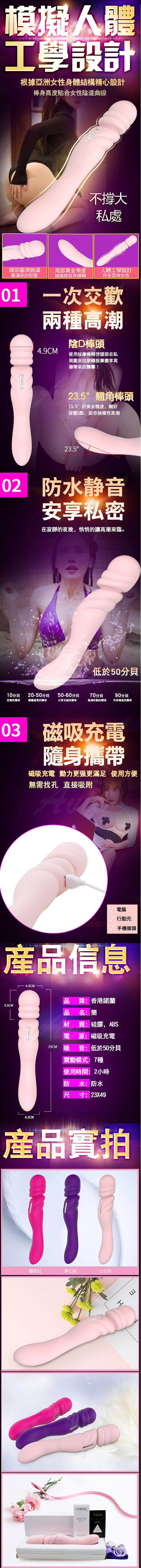 .商品內容:香港Nalone-簡Gem 7段變頻雙頭雙震矽膠按摩棒-桃