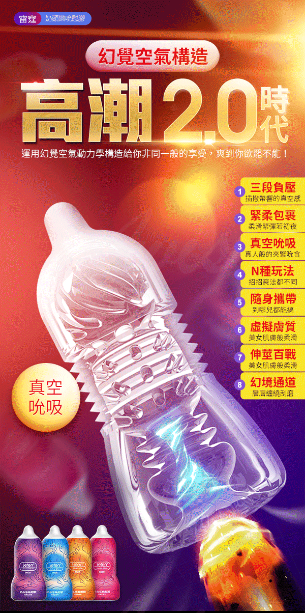 運用幻覺空氣動力構造,推動高潮的進步,給你非同一般的享受爽到欲拔不能~擁有三段負壓真空構造形成強力真空及厚重真實的包裹著老二感增加摩擦感猶如迷失在幻境通道般。採用虛擬膚質材質,柔軟Q彈享受肌膚舒適快感更加銷魂真實練就不倒金剛槍。