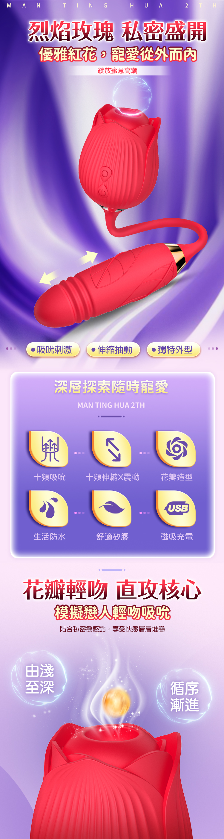 ·商品名稱·滿庭花 二代|吮吸震動|伸縮按摩棒