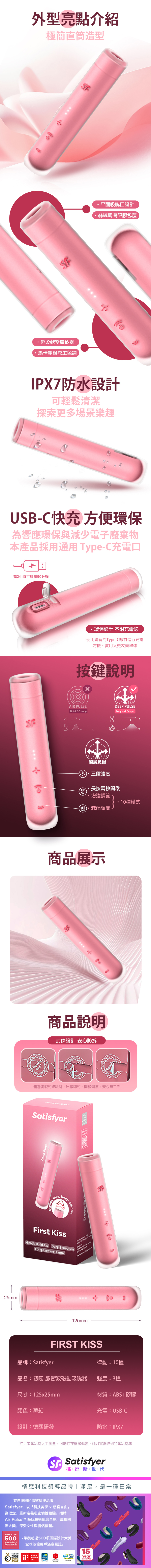 品名:Satisfyer|First Kiss|初吻脈衝波磁動吸吮器 霧粉